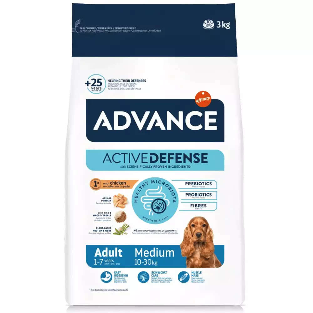 Advance Medium Adult ofrece una alimentación completa, sabrosa y equilibrada, ideal para mantener la vitalidad, la fuerza y el bienestar diario de tu mascota adulta.
