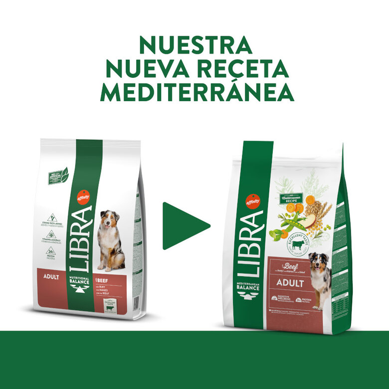 Libra Adult con Buey es un alimento completo y equilibrado para perros adultos de cualquier raza, elaborado con ingredientes cuidadosamente seleccionados para aportar todos los nutrientes que tu mascota necesita en su día a día, con un gran sabor a buey que garantiza una excelente aceptación.