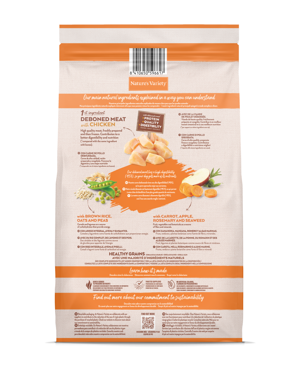 Elaborado con pollo deshuesado, verduras y cereales integrales