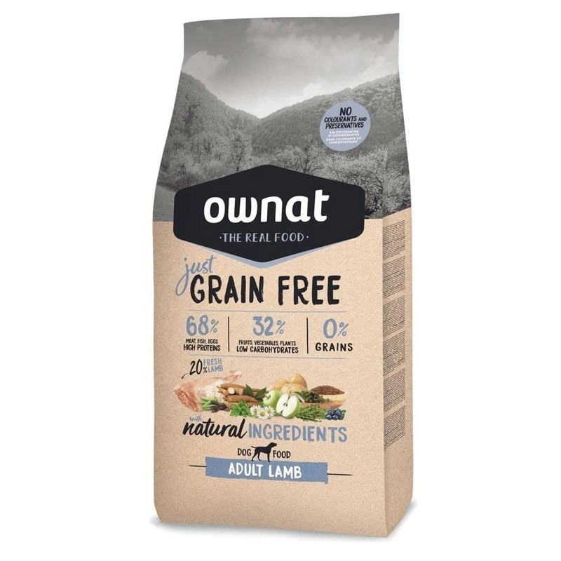 OWNAT Just Grain Free Lamb para Perros Adultos es un alimento completo y equilibrado sin cereales, formulado para perros de todas las razas. Su receta combina un 40 % de carne deshidratada y un 20 % de cordero fresco, lo que garantiza un alto contenido de proteínas de alta calidad, esenciales para mantener una masa muscular fuerte y una condición física óptima.