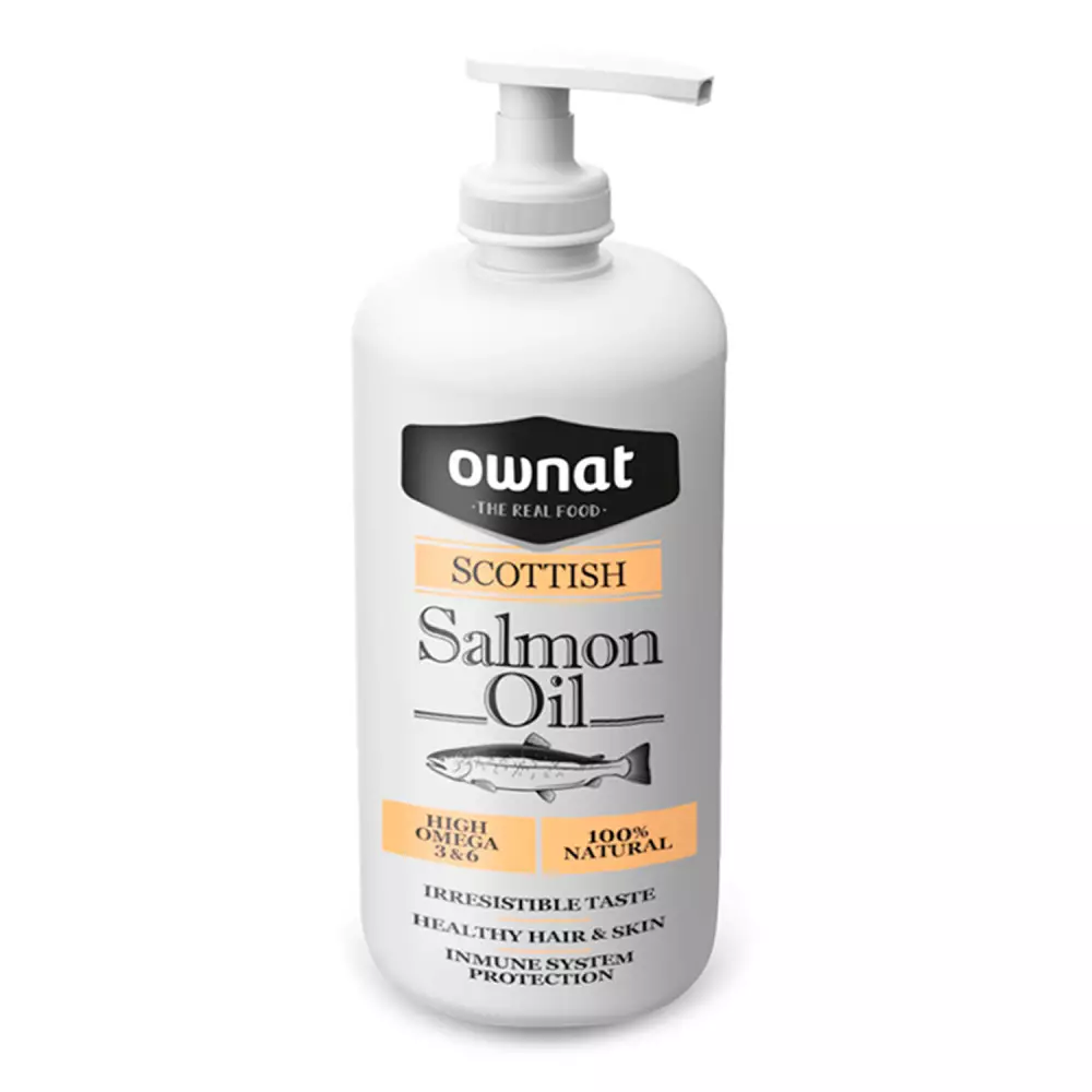 Ownat amplía su gama de alimentos y complementos con este aceite de salmón 100% natural, sin aditivos ni conservantes artificiales. Procedente de Escocia, conserva todas las propiedades de los ácidos grasos presentes en el salmón fresco, garantizando un producto saludable, nutritivo y altamente beneficioso para perros y gatos.